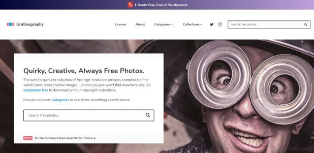 Gratisography is a quirky looking site. In keeping with the theme, many images seem to fit the same modern, hipster, quirky style.